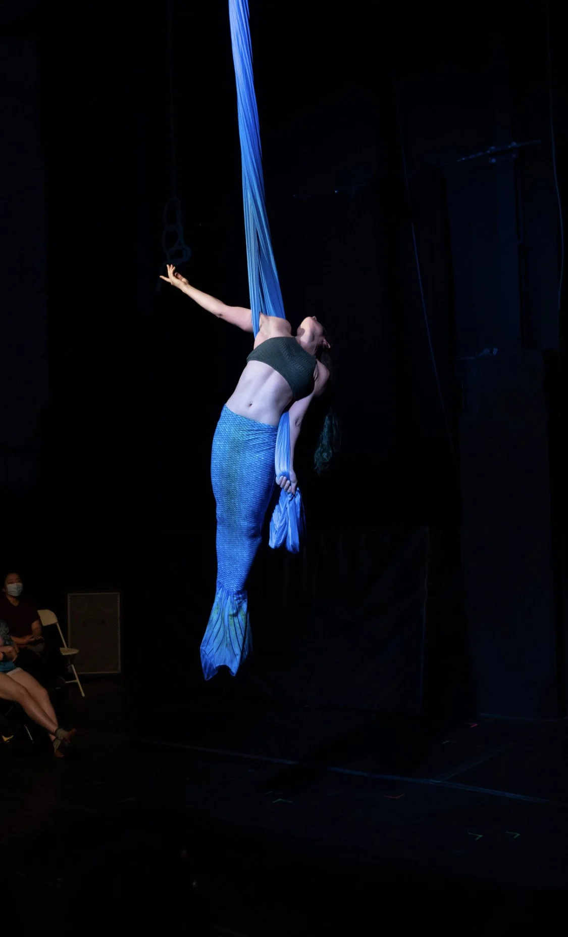 This act was created for a show titled “World Tour” at Versatile Arts Seattle - a magical excursion around the globe. I took the audience to the depths of the sea to meet an ethereal creature who makes you forget whether you are above or below the surface. It was challenge and a joy to create this piece in a mermaid tail, certainly a limitation that bred creativity of movement and problem solving!